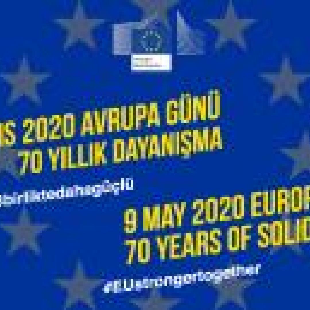 Bu yıl, Fransa Dışişleri Bakanı Robert Schuman tarafından 9 Mayıs 1950'de sunulan ve sonuçta bugünün Avrupa Birliği haline gelen yeni bir siyasi iş birliğini ortaya koyan Schuman Bildirgesi'nin 70. yıl dönümü. Bu yılki Avrupa Günü etkinlikleri, tüm Avrupa'da etkileyici bir dayanışma sergilenmesine yol açan yeni koronavirüs salgınının sebebiyet verdiği zorluklar çerçevesinde gerçekleştiriliyor. Bu yüzden Avrupa Günü 2020'de, bu zor zamanlarda yardım elini uzatan herkese, birçok sanal etkinlik aracılığıyla teşekkürlerimizi sunmak istiyoruz.