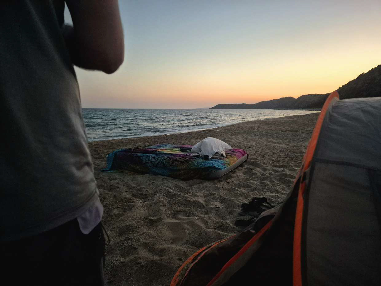 Daha sonra onu uyunacak çok güzel bir yere götürdüm; ağaçların, sanki sahile dokunmak ister gibi usulca denize doğru eğildiği, kumun suyun içinde yavaşça kaybolduğu bir yerdi. Gece olunca gökyüzü renklerle dolu bir sahneye dönüşür, Samanyolu ise sessizce, parıldayan bir sır gibi üzerimize uzanırdı. Çadırla hiç uğraşmadan açık gökyüzünün altında uyuduk.